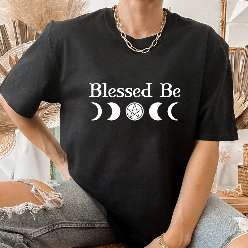 Embrace your mystical side with our Blessed Be T-shirt. This aesthetic witchy tee features captivating moon phases, making it the perfect addition to your gothic, witchy wardrobe. Crafted with comfort and style in mind, this shirt is a must-have for any witch, Wiccan, or pagan. Let the magical energies guide you while you rock this enchanting and aesthetic tee.