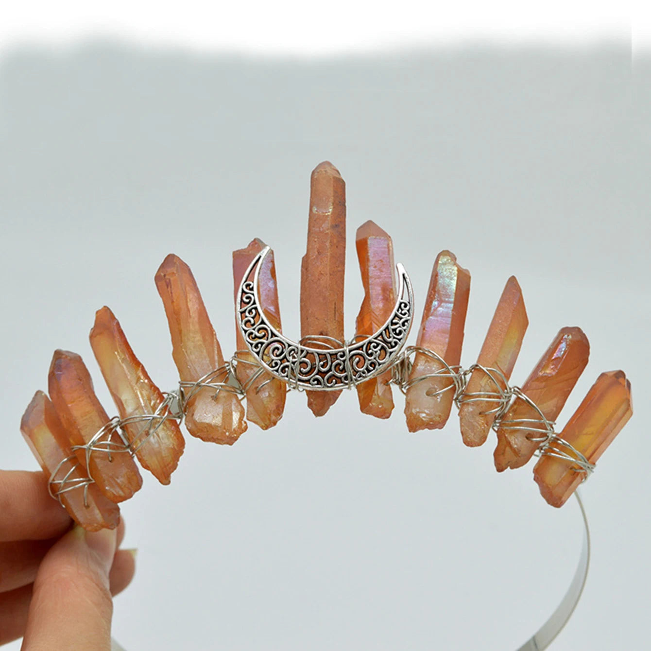 Handmade Natural Crystal Moon Crown