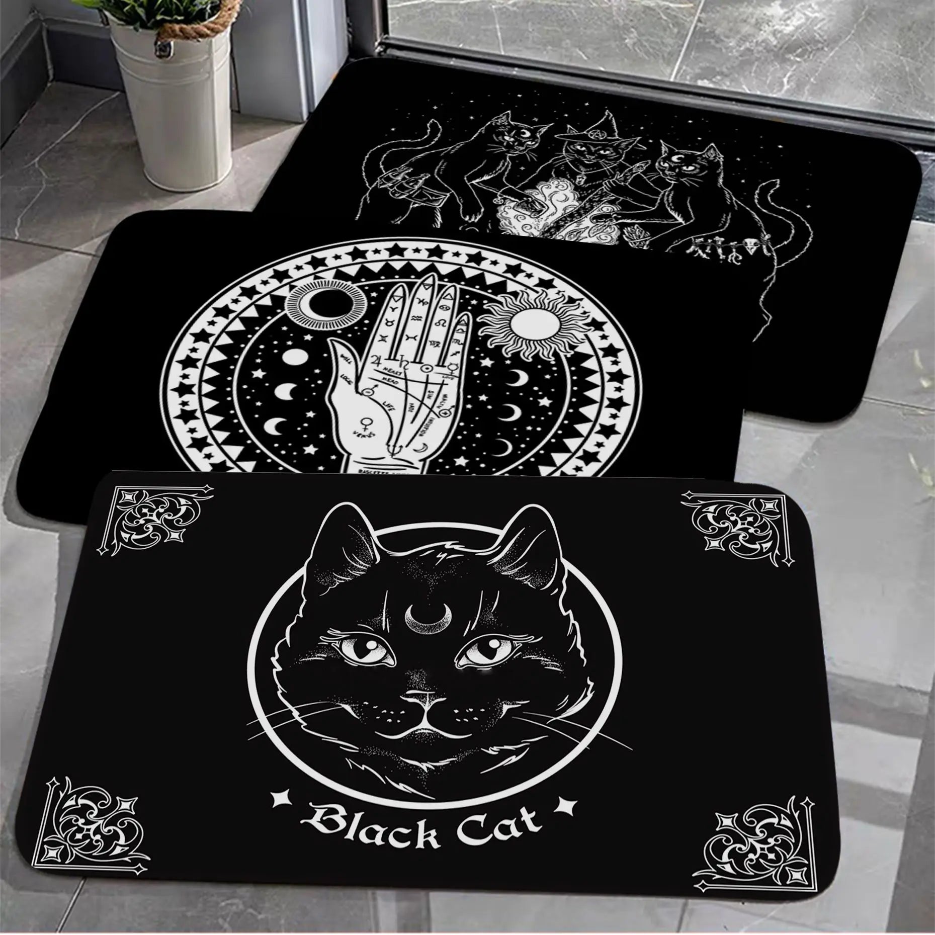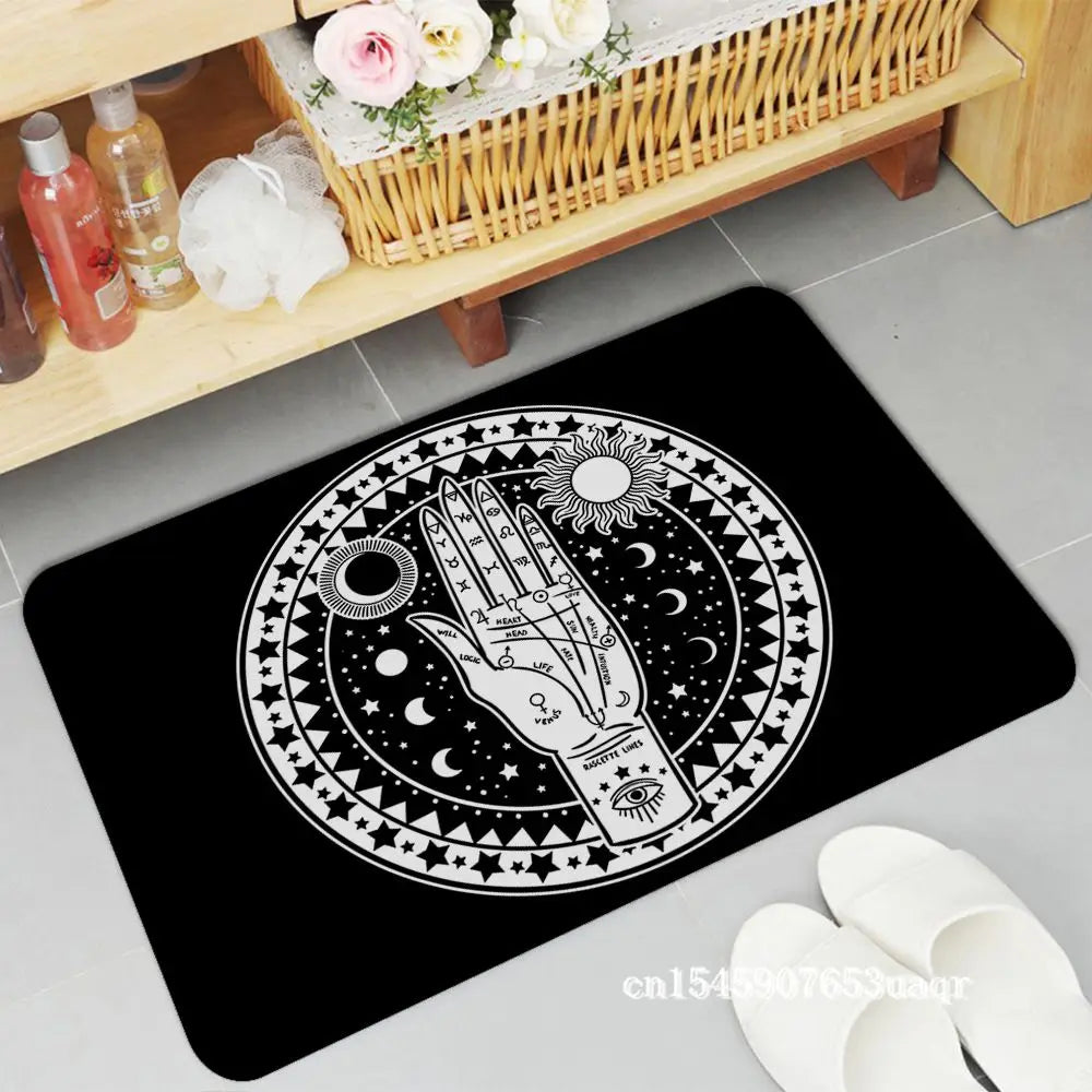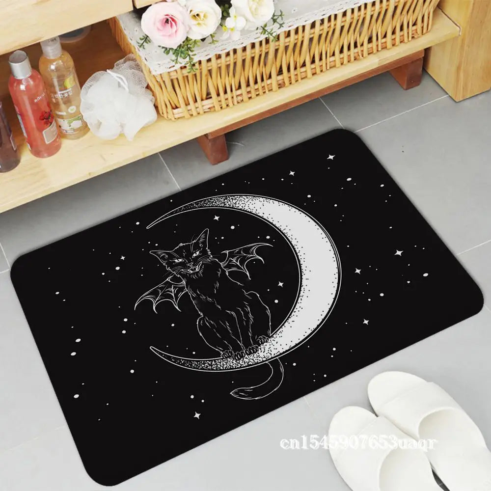 Welcome guests with a touch of mystery and magic with our Cat Mysterious Divination Witchcraft Door Mat. This rectangle, anti-slip mat is the perfect addition to your home, offering both style and functionality. Featuring a cat and divination symbols, it adds a mystical vibe to your indoor or outdoor space. Keep your floors clean and enhance your doorstep with this bewitching mat, making it an ideal addition for any witchy household.