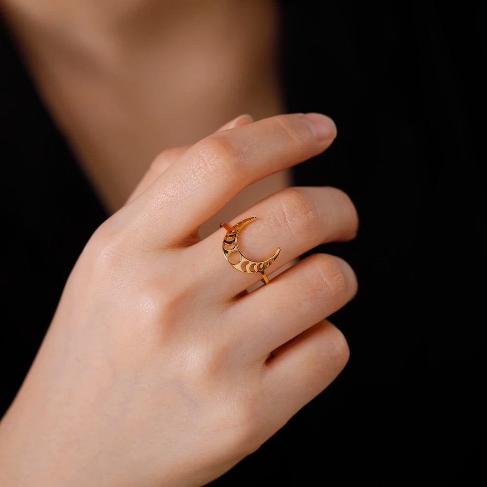 Elevate your style with our Simple Moon Phase Ring. This unique and exquisite ring is the smallest moon phase ring, yet its inner moon details are truly exquisite. Whether worn alone or stacked, this versatile piece can complement any outfit, making you stand out from the crowd. Embrace the magic of the moon and add a touch of celestial elegance to your look with this captivating ring.